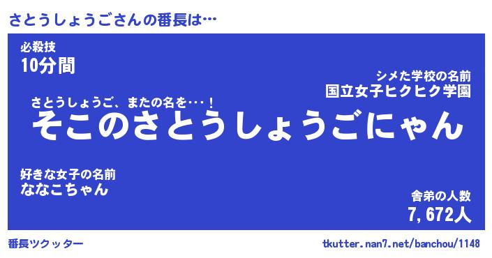 | 男性向けラノベタイトル風あだ名 | 『さとうしょうごの憂鬱』 |