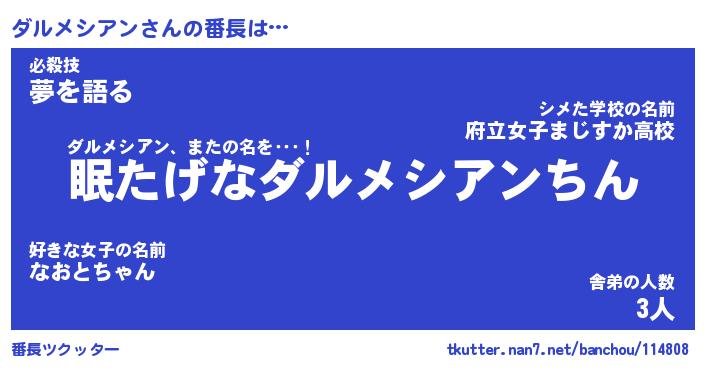 | ヒーロー風カッコイイあだ名 | 『スーパーダルメシアン』『魔戒騎士ダル』 |