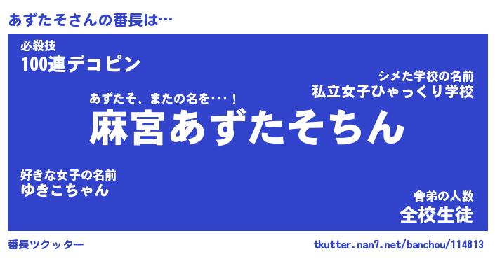 | 意味不明あだ名 | 『ペロリンあずたそ』『永久保存あずたそ』 |