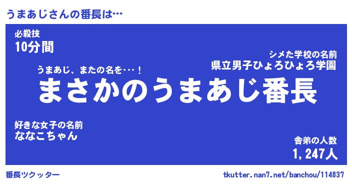 | 伝説のあだ名 | 『伝説のスナイパーうまあじ』 |
