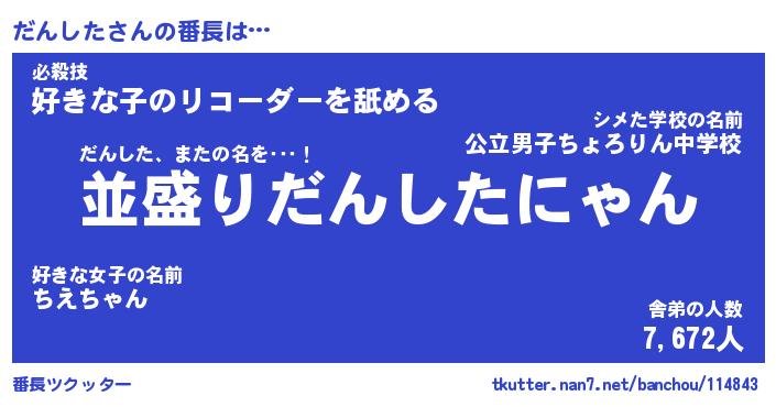 | 意味不明あだ名 | 『ペロリンだんした』『永久保存だんした』 |