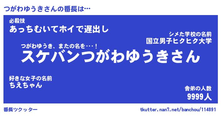 | ヒーロー風カッコイイあだ名 | 『スーパーツガワユウキ』『天弓騎士ツガ』 |