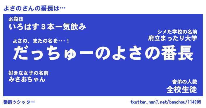 | 肩書あだ名 | 『よさの店長』『よさの総理大臣』 |