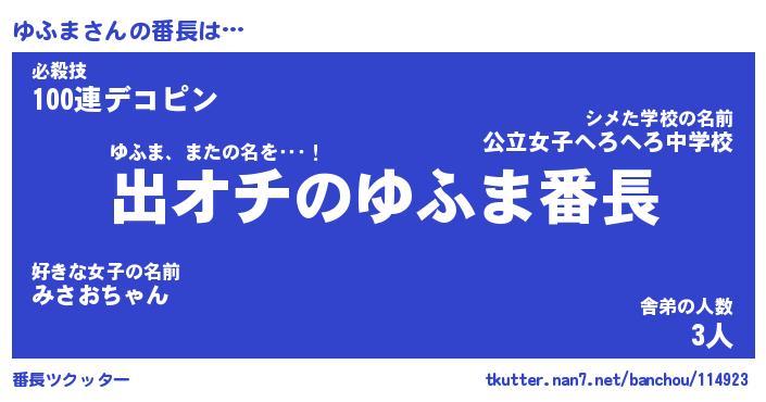 | 意味不明あだ名 | 『ペロリンゆふま』『ゆふまフォーエバー』 |