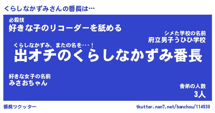 | 男性向けラノベタイトル風あだ名 | 『くらしなかずみの憂鬱』 |