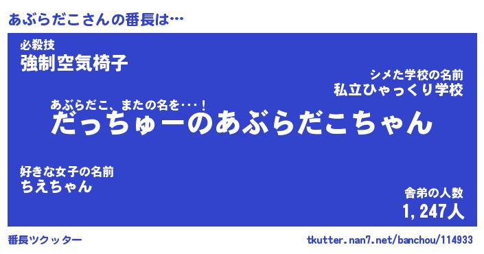 | ヘコむあだ名 | 『あぶにー』『牛乳』『あぶっちょ』 |