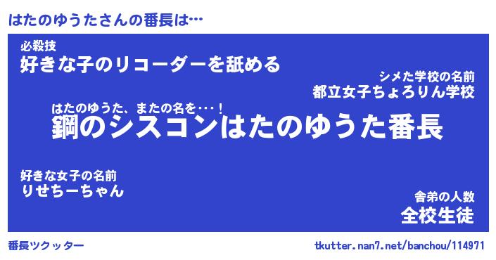 | ポケモン風あだ名 | 『ハタチュウ』『ハタノダネ』 |