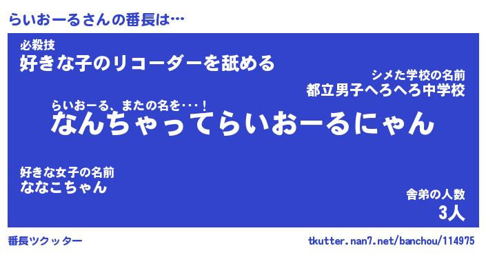 | 意味不明あだ名 | 『ペロリンらいおーる』 |
