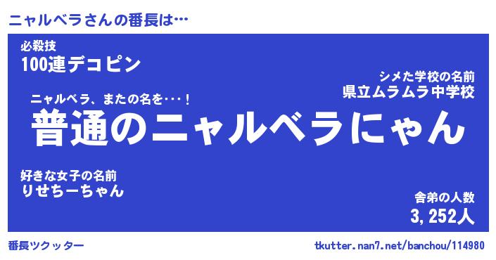 | ヒーロー風カッコイイあだ名 | 『スーパーニャルベラ』『幻影騎士ニャ』 |