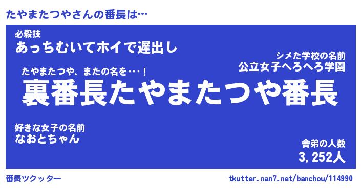 | 肩書あだ名 | 『たやまたつや店長』『たやまたつや担任』 |