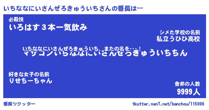 | 伝説のあだ名 | 『封印されし竜騎士いちななにいさんぜろきゅういち』 |
