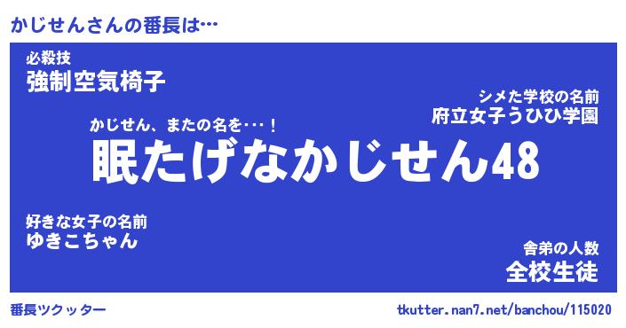 | 意味不明あだ名 | 『ペロリンかじせん』『永久保存かじせん』 |