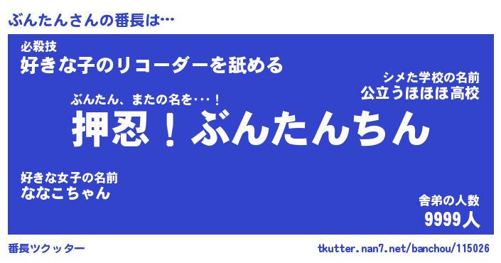 | ヒーロー風カッコイイあだ名 | 『スーパーブンタン』『天弓騎士ブン』 |