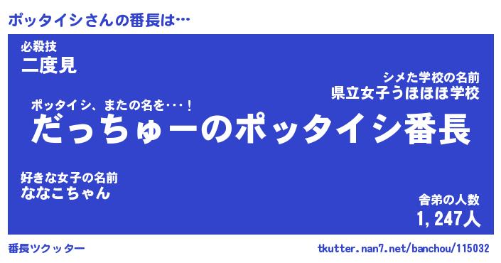 | ヒーロー風カッコイイあだ名 | 『スーパーポッタイシ』『暗黒騎士ポッ』 |