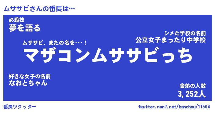 | 2回繰り返すあだ名 | 『ムサムサ』『ムムササ』『なあなあ』 |