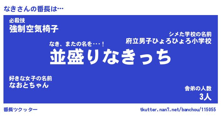 | ヒーロー風カッコイイあだ名 | 『スーパーナキ』『ウルトラなきマン』 |