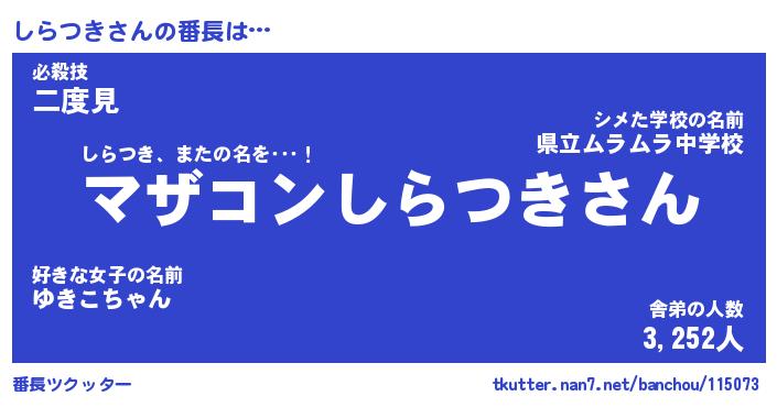 | 伝説のあだ名 | 『封印されしスナイパーしらつき』 |