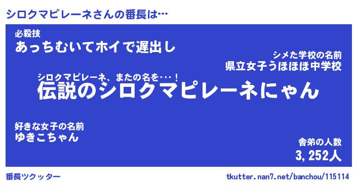 | 2回繰り返すあだ名 | 『シロシロ』『シシロロ』『ぬぷぬぷ』 |