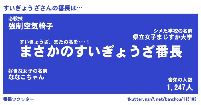 | ヒーロー風カッコイイあだ名 | 『スーパースイギョウザ』『銀牙騎士スイ』 |