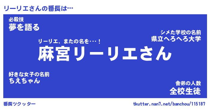 | 2回繰り返すあだ名 | 『リーリー』『リリーー』『うねうね』 |