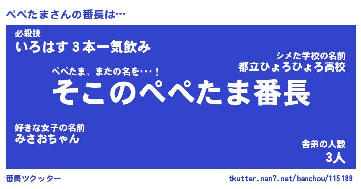 | 意味不明あだ名 | 『ペロリンぺぺたま』『永久保存ぺぺたま』 |