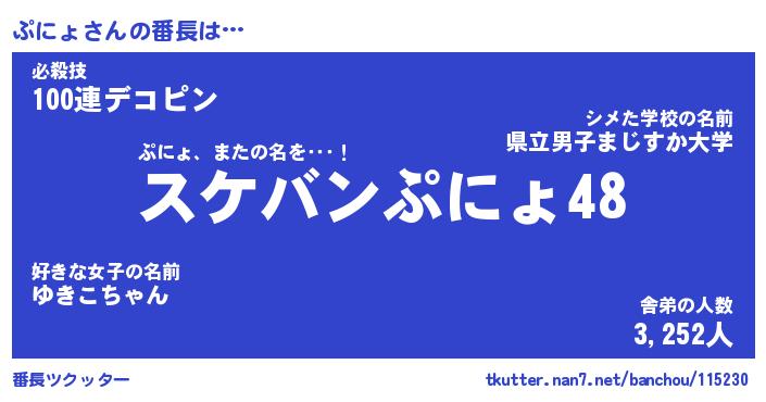 | 意味不明あだ名 | 『ペロリンぷにょ』『ぷにょフォーエバー』 |