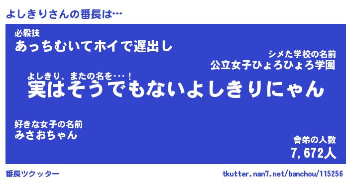 | 肩書あだ名 | 『よしきり店長』『よしきり国家主席』 |