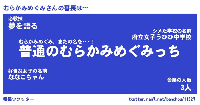 | 2回繰り返すあだ名 | 『むらむら』『むむらら』『なあなあ』 |
