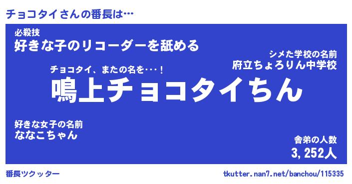 | 肩書あだ名 | 『チョコタイ社長』『チョコタイ国家主席』 |