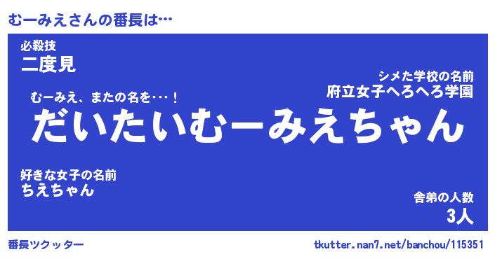 | 意味不明あだ名 | 『ペロリンむーみえ』『永久保存むーみえ』 |