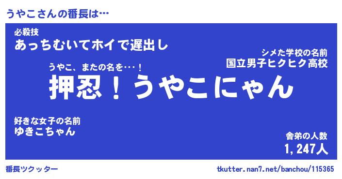 | ヘコむあだ名 | 『うやにゅー』『豆乳』『うやお』 |