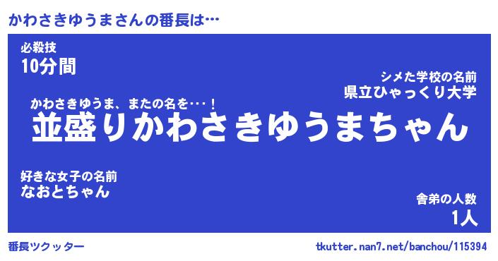 | 胡散臭い通販商品みたいなあだ名 | 『モテモテ間違いなし水晶球…その名も「かわさきゆうま」』 |