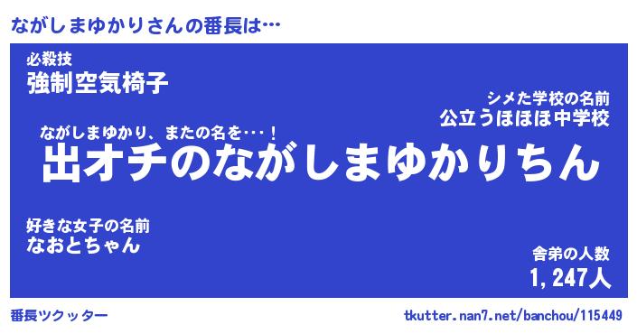| 男性向けラノベタイトル風あだ名 | 『ながしまゆかりの憂鬱』 |