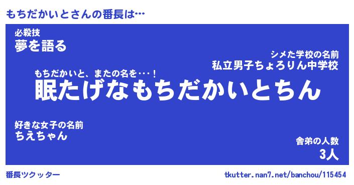 | ヒーロー風カッコイイあだ名 | 『スーパーモチダカイト』『魔戒騎士モチ』 |