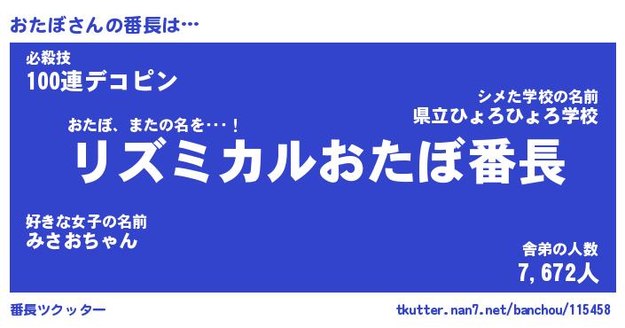 | ヒーロー風カッコイイあだ名 | 『スーパーオタボ』『ウルトラおたぼマン』 |