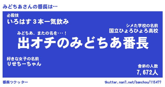 | 意味不明あだ名 | 『ペロリンみどちあ』『永久保存みどちあ』 |