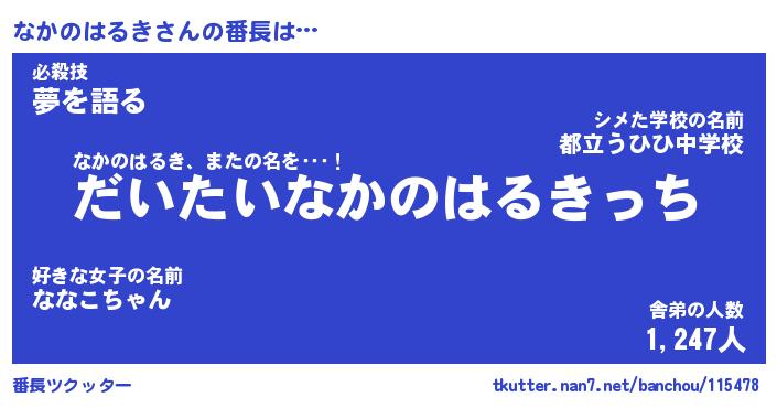 | ヒーロー風カッコイイあだ名 | 『スーパーナカノハルキ』『銀牙騎士ナカ』 |