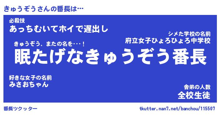 | ヒーロー風カッコイイあだ名 | 『スーパーキュウゾウ』『天弓騎士キュ』 |
