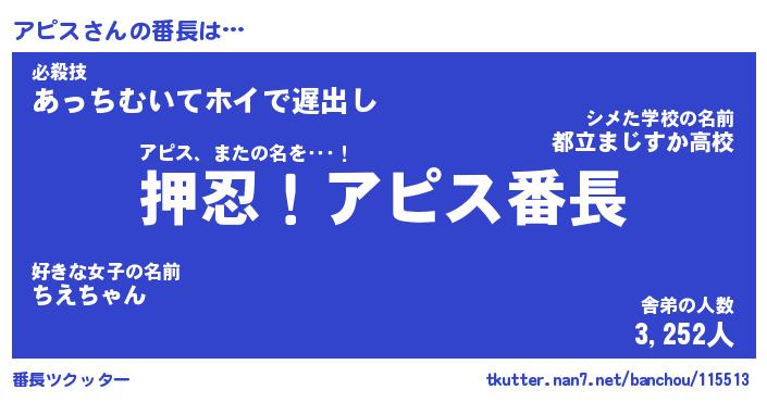 | 意味不明あだ名 | 『ペロリンアピス』『アピスフォーエバー』 |