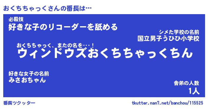 | 男性向けラノベタイトル風あだ名 | 『おくちちゃっくの憂鬱』 |