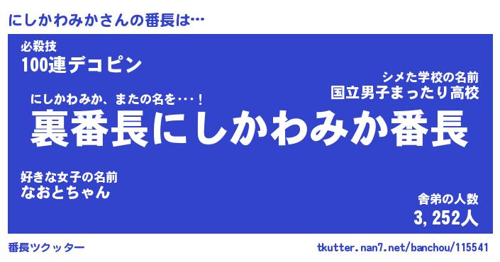 | ヘコむあだ名 | 『にしもー』『つくし』『にしっ子』 |