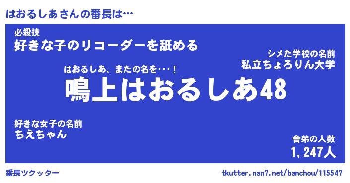 | 肩書あだ名 | 『はおるしあ社長』『はおるしあ国家主席』 |