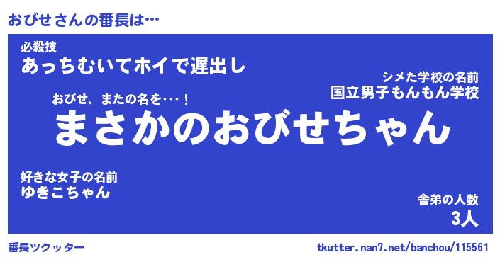 | ピコ太郎風あだ名 | 『オコ二郎』『ピオ史郎』『オビ十郎』 |