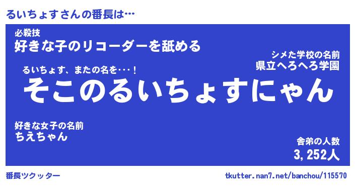 | ファンタジー風あだ名 | 『ルイフェル』『エターナルルイチョスー』 |