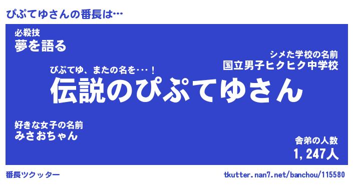| 男性向けラノベタイトル風あだ名 | 『ぴぷてゆの憂鬱』 |