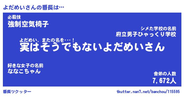 | ヒーロー風カッコイイあだ名 | 『スーパーヨダメイ』『炎刃騎士ヨダ』 |