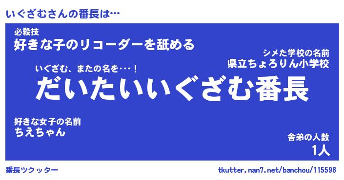 | 意味不明あだ名 | 『ペロリンいぐざむ』『永久保存いぐざむ』 |