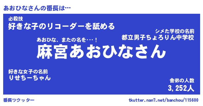 | ファンタジー風あだ名 | 『アオフェル』『エターナルアオヒナー』 |