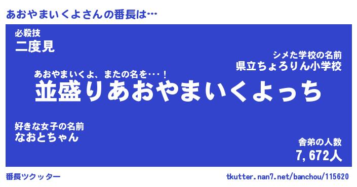 | ポケモン風あだ名 | 『アオチュウ』『アオヤダネ』 |