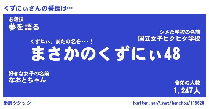 | 肩書あだ名 | 『くずにぃ社長』『くずにぃ国家主席』 |